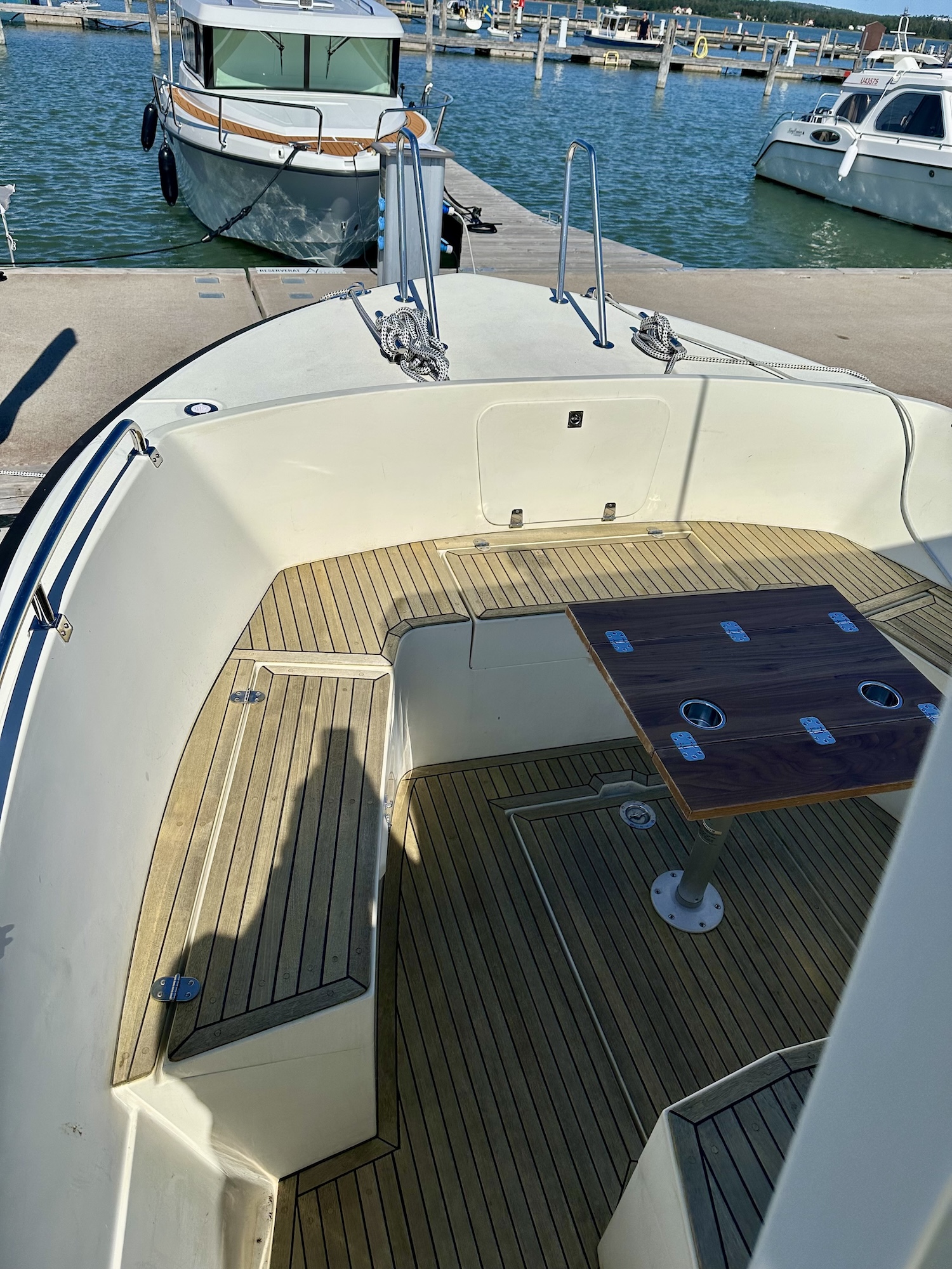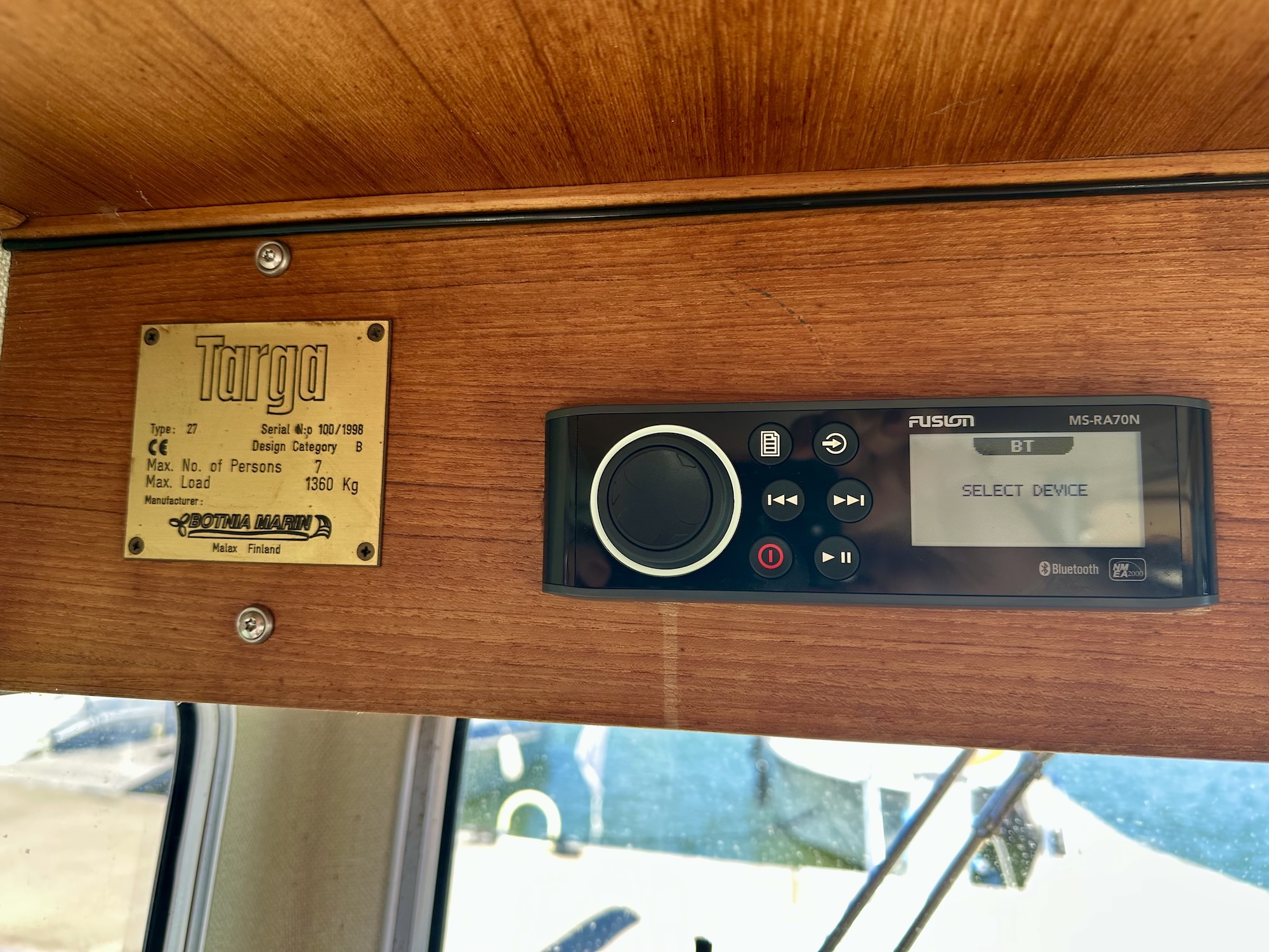 En välutrustad och pålitlig Targa 27 Fly, perfekt för både bekväma dagsturer och längre äventyr. En båt med sjöegenskaper och byggkvalitet i toppklass. Denna har genomgått stora uppgraderingar på teknik-och navigationssidan. Utrustad med en Volvo Penta KAD 44