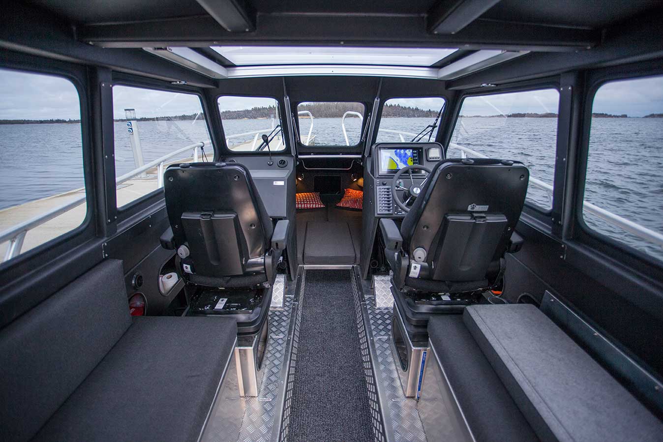 Alla ALUKIN båtar kommer välutrustade från början. Med bland annat värmare, fjädrande stolar med nackstöd, trimplan, elektrisk länspump, dubbla batterier, låsögla, ytbehandling och mycket mer.